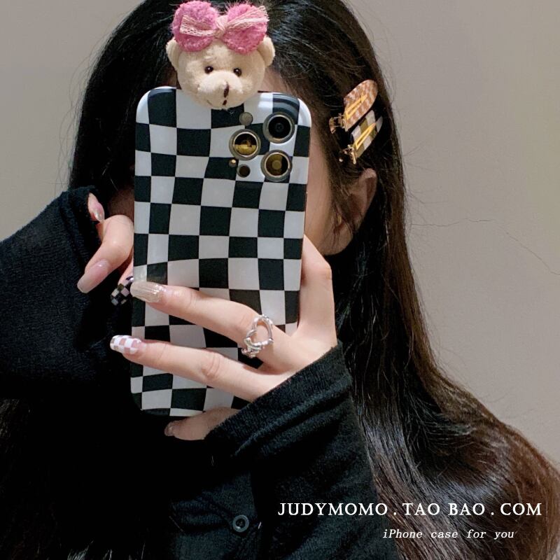 insチェッカーボードかわいい姉妹クマ適切な13promaxアップル11携帯電話シェルxrオールインクルーシブiPhone12ソフト78p 大人ガーリー スウィート キュート カジュアル NEW iphoneケース かわいい MOMO75818633062
