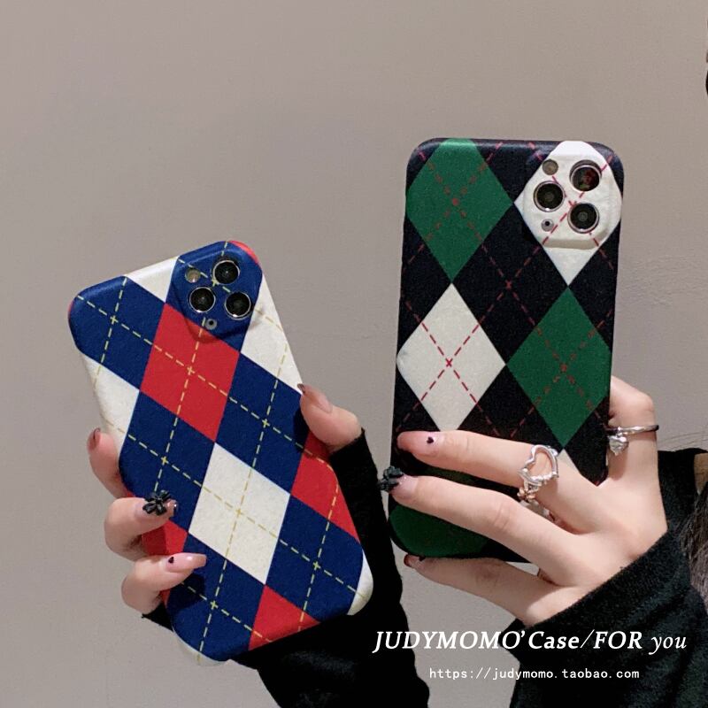 insチェック柄スタイルBritishLinggeレトロに適したApple13携帯電話保護シェルxsmax / iPhone12 / 11proクロス NEW iphoneケース かわいい MOMO38461059474