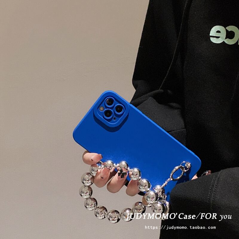 ins冷風クラインブルーシルバービーズチェーンpro携帯電話保護シェル11オールインクルーシブ 銀 NEW iphoneケース かわいい MOMO40102807156