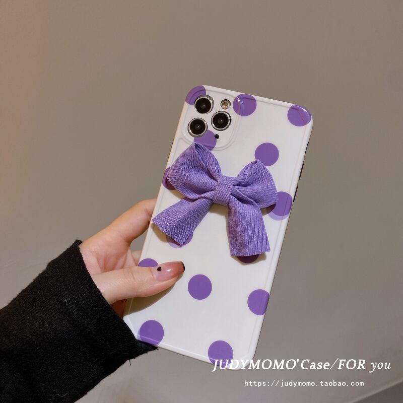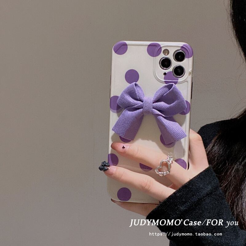 ガーリースタイルの紫色の弓に適した12promax Apple13携帯電話保護シェルiPhone11オールインクルーシブxrウェーブポイント8 リボン パープル iphoneケース かわいい MOMO6986401901