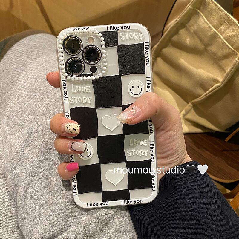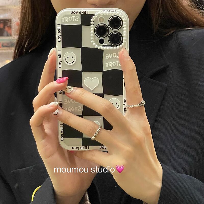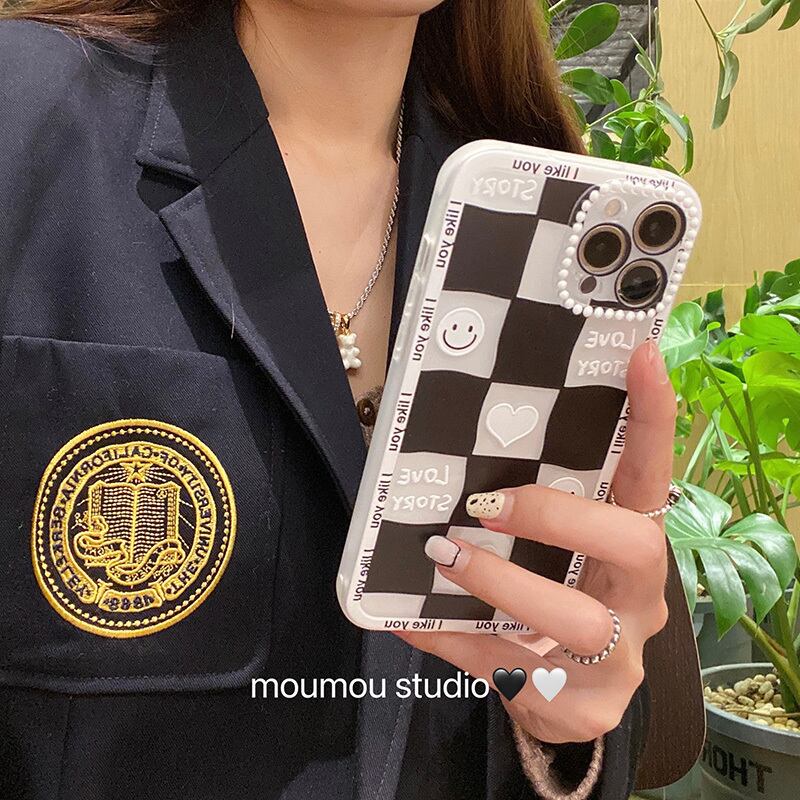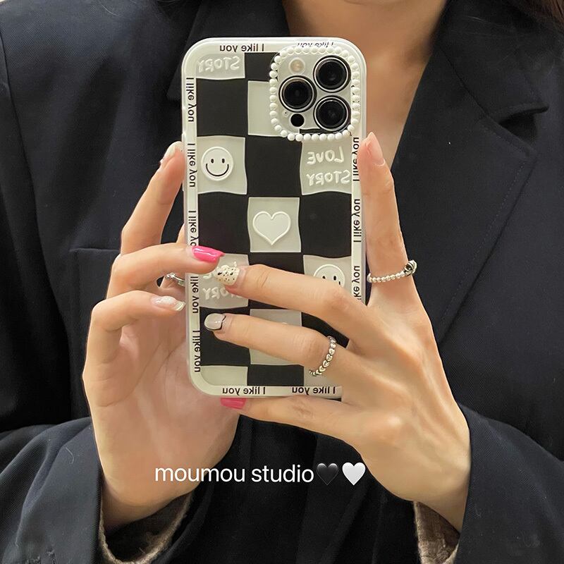 ブラックホワイト格子柄セット iphoneケース かわいいA MOMO_A54804826404