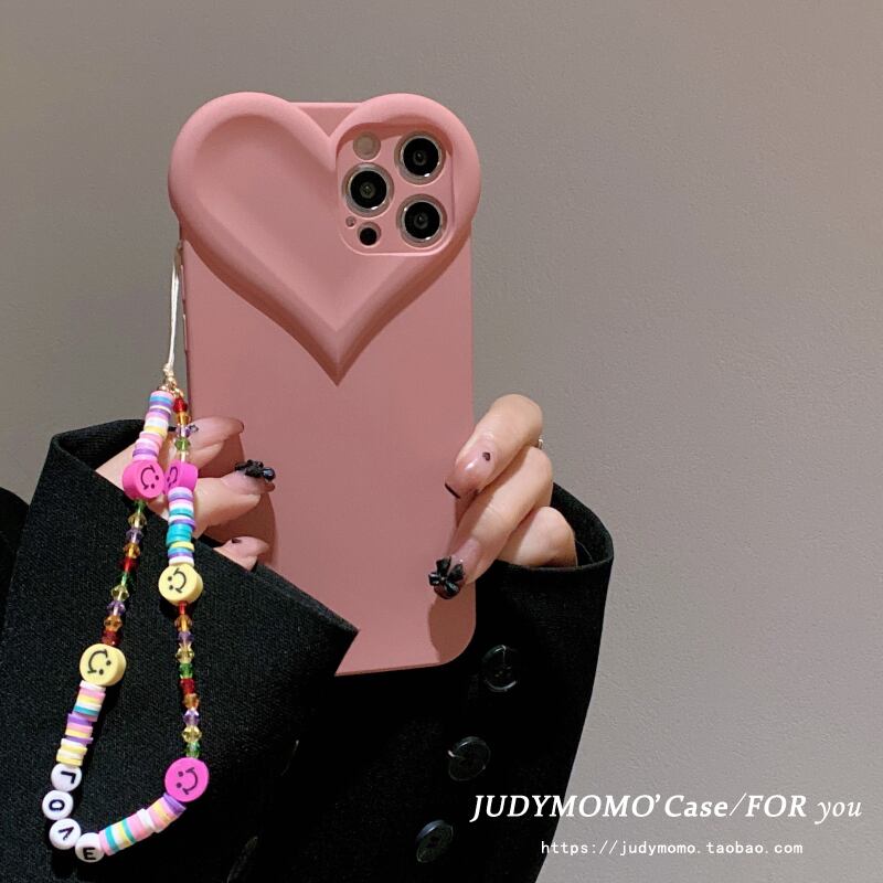 ハンギングチェーン付きの立体的なラブピンク13promax Apple12携帯電話保護シェルiPhone11シリコンxrソフト8 iphoneケース かわいい MOMO16674394511