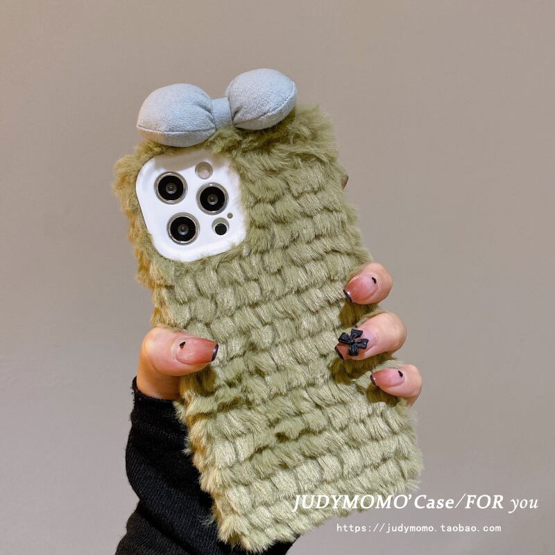 レトロボウぬいぐるみグリーン12promax Apple13携帯電話保護シェルiPhone11オールインクルーシブxrメス8ソフト リボン iphoneケース かわいい MOMO64094536685