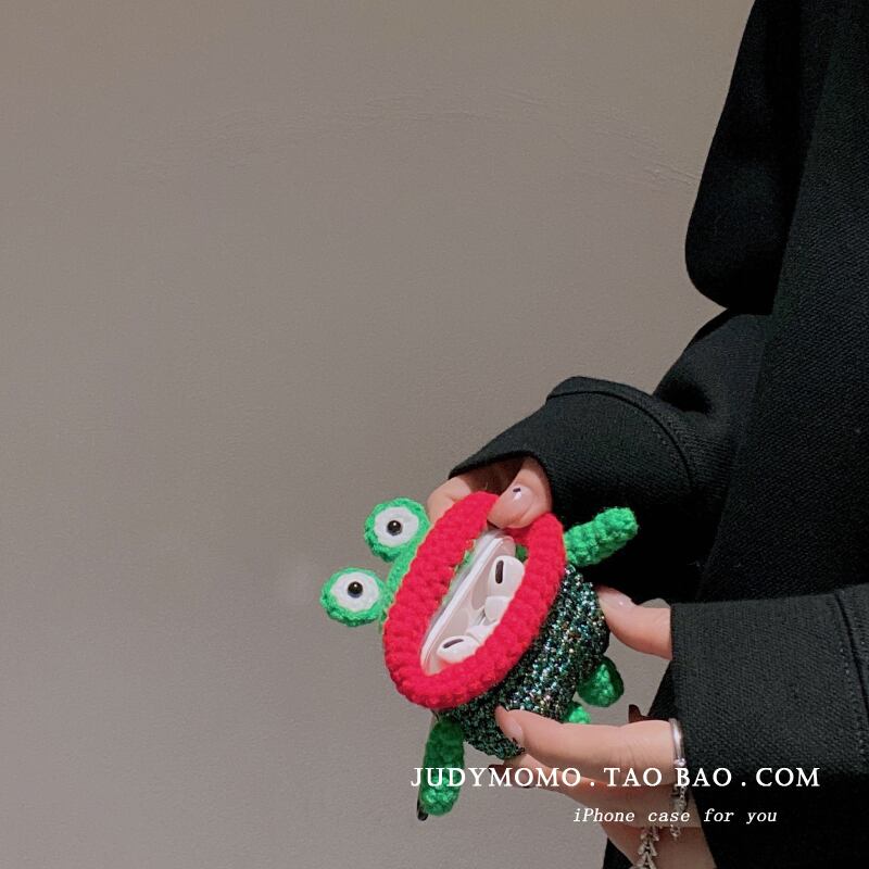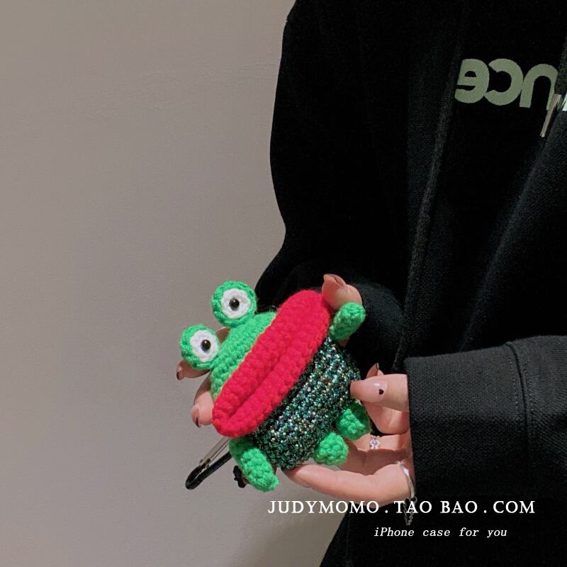 新しいぬいぐるみのカエルニットイヤホンカバーは、AirPodsAppleBluetoothイヤホン保護カバーソフトシェル1/2世代に適しています ブルー かわいい MOMO96986661120