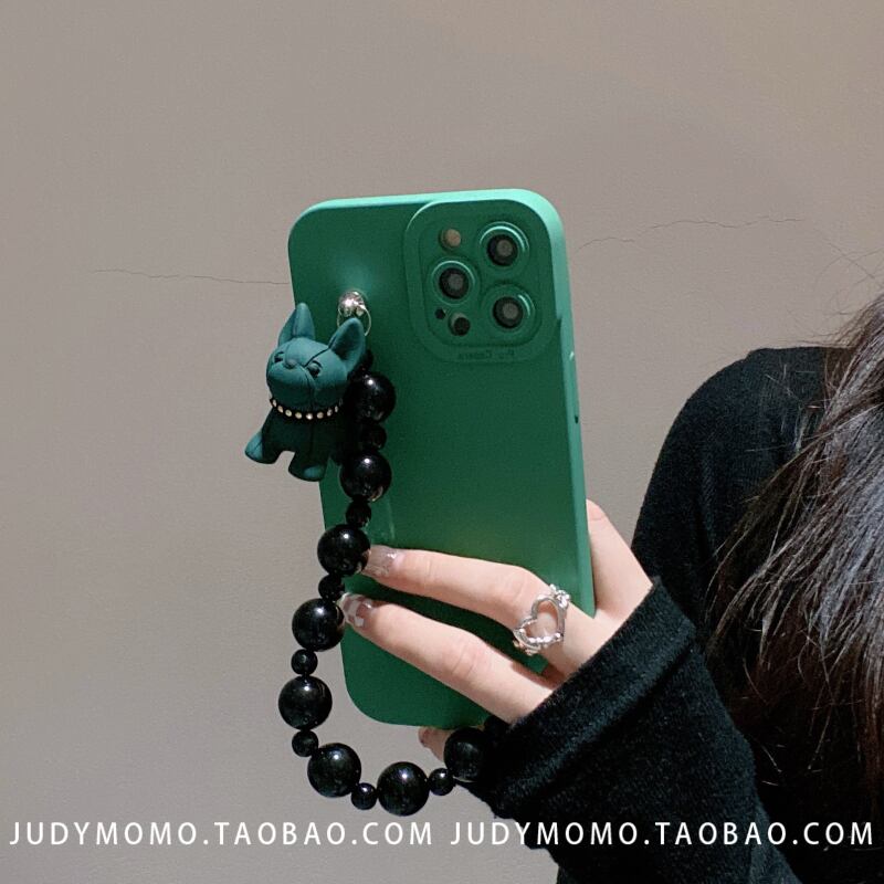 フレンチスタイルのブルドッググリーンチェーンに適したiphon13promaxアップル12携帯電話保護シェル11 / xsオールインクルーシブx かわいい MOMO43367276465