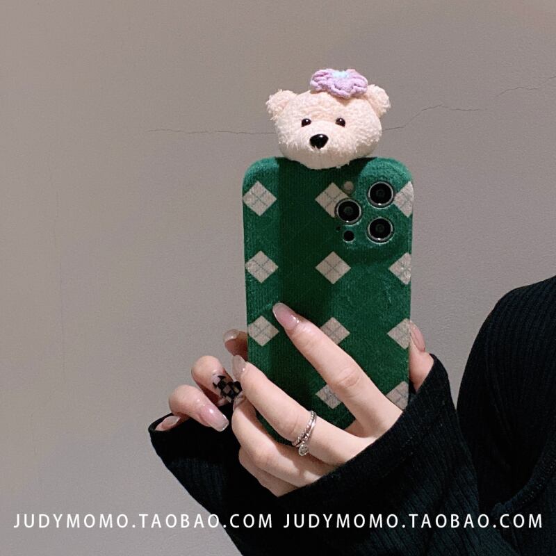 ins三次元ぬいぐるみ菱形グリーンに適した12promax Apple13携帯電話保護シェルiPhone11soft xr / 8 NEW iphoneケース かわいい MOMO28277535577