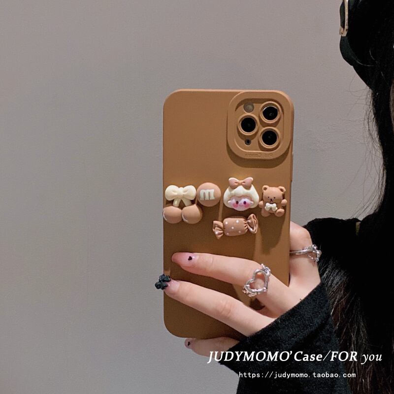 ins漫画三次元キャラメルブラウン適切な13pro携帯電話保護シェル携帯電話保護シェルxr NEW iphoneケース かわいい MOMO1994700315