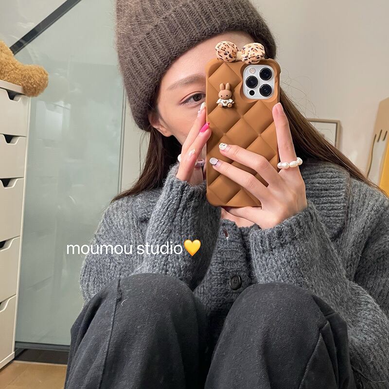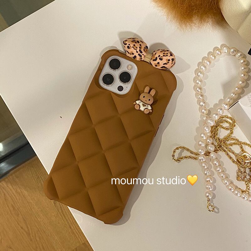 ブラウンレオパードリボン iphoneケース かわいいA MOMO_A14210339068