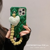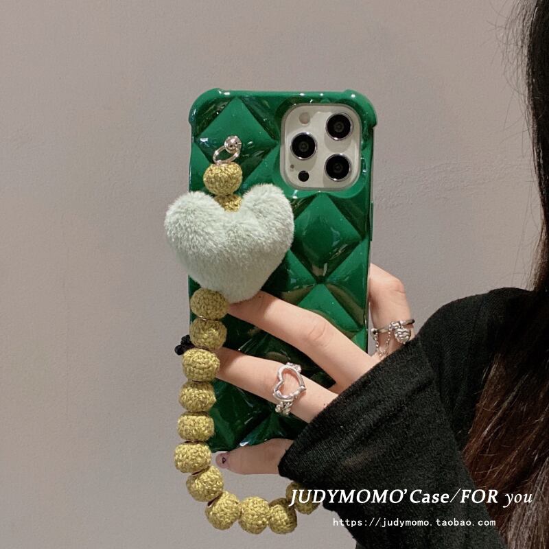 レトロなひし形の緑のぬいぐるみチェーンiPhone13promax Apple12携帯電話保護シェルxrシリコン11ソフト8 グリーン iphoneケース かわいい MOMO86286380503