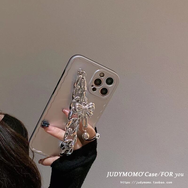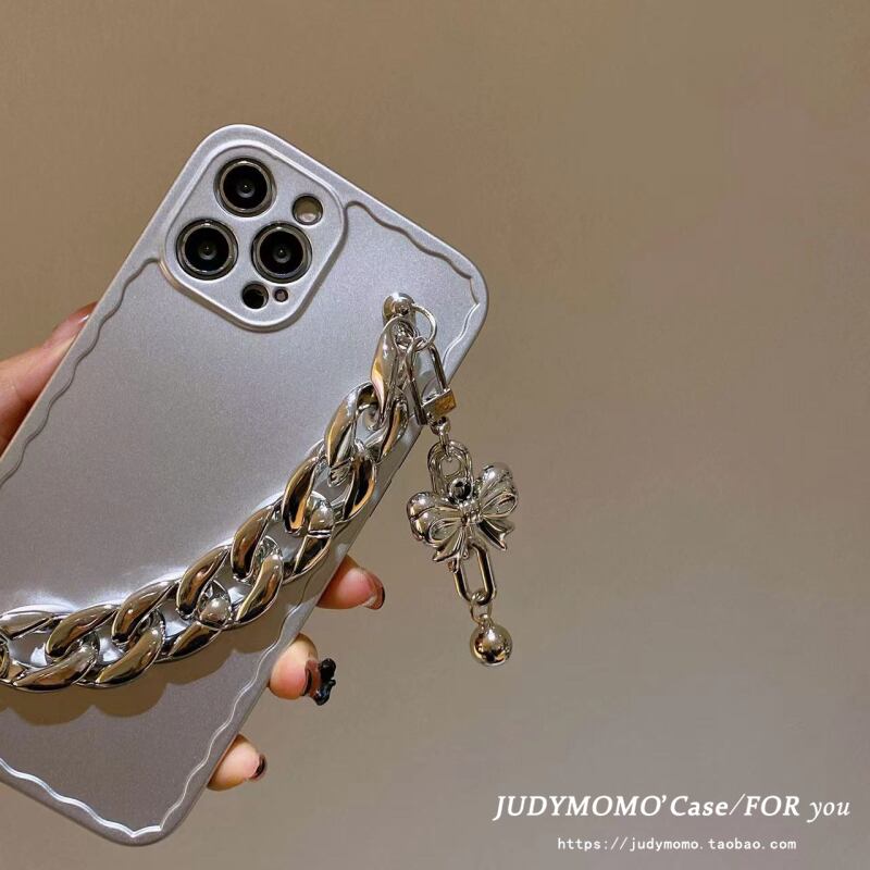 甘くてクールなボウチェーンシルバーに適した携帯電話保護シェル11promaxnew xr / 8 リボン 大人ガーリー スウィート キュート カジュアル 銀 iphoneケース かわいい MOMO71895260973