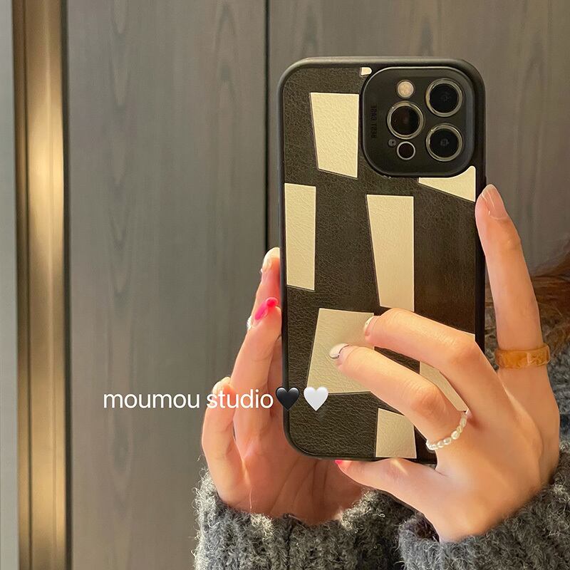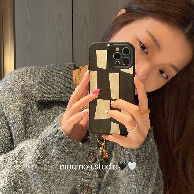 レザーパターンブラックホワイト iphoneケース かわいいA MOMO_A29910686175