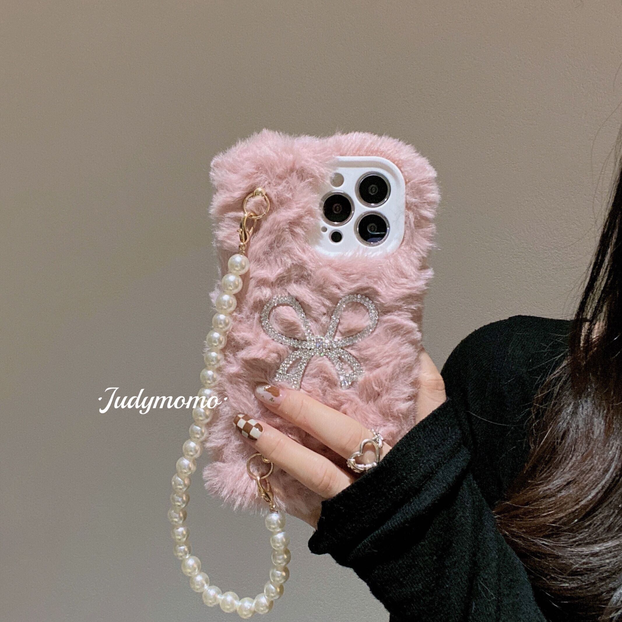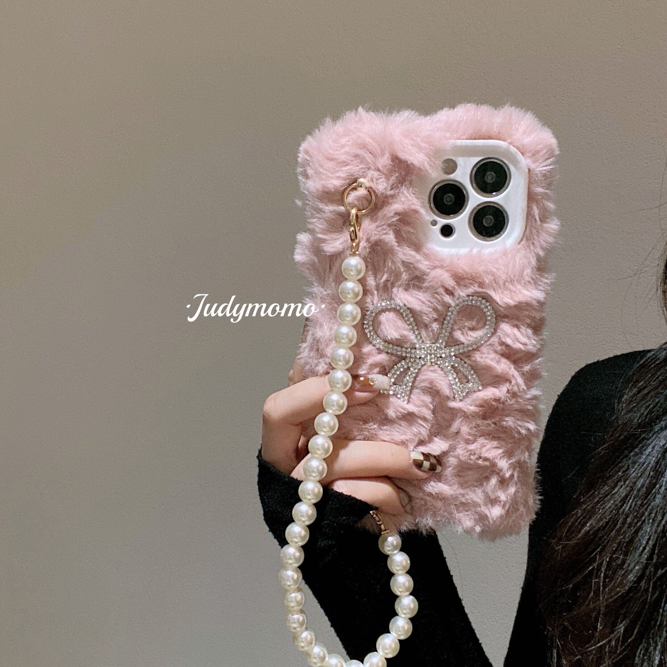 ぬいぐるみピンクyボウ13promaxアップル12携帯電話保護シェルiPhone11パールチェーンxr / 7 リボン 真珠 iphoneケース かわいい MOMO64742775582