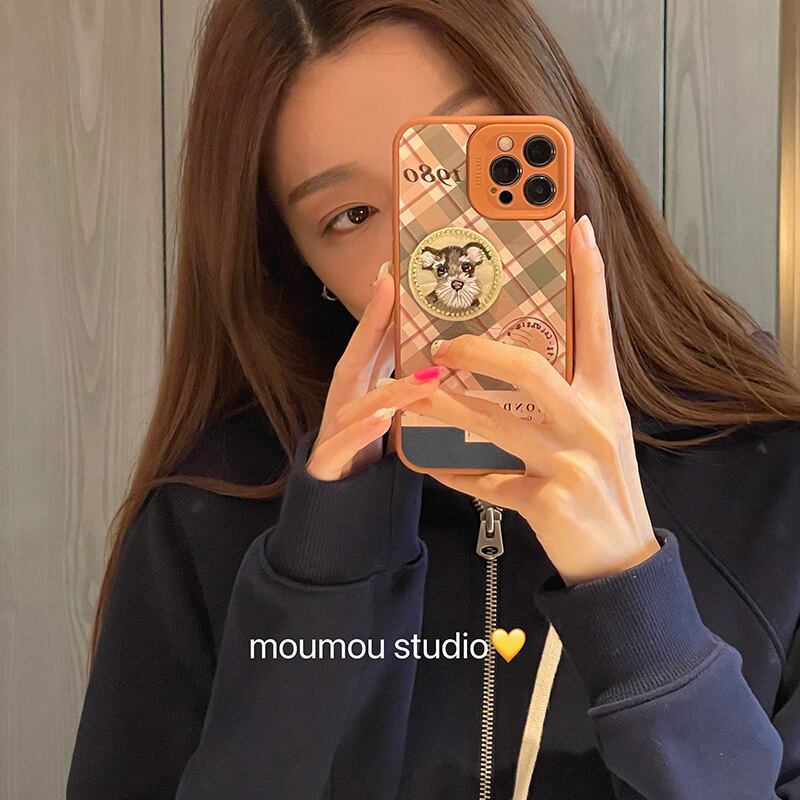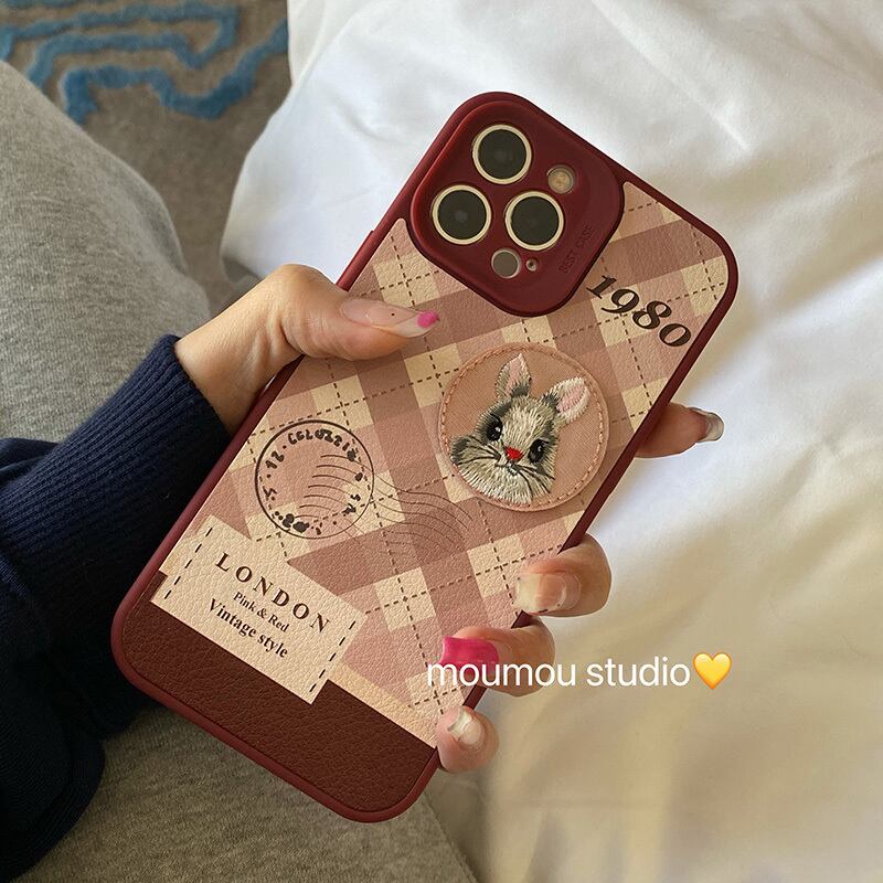 秋物ウィンター格子柄刺繍 オータム 冬物 iphoneケース かわいいA MOMO_A71426317591