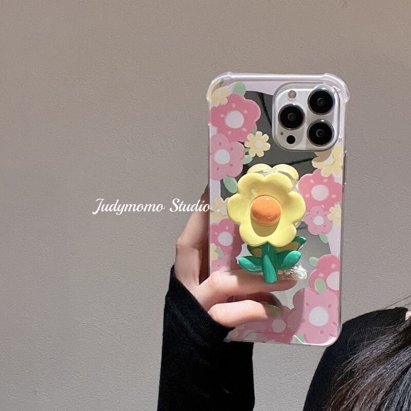 ins小さな黄色いフラワーブラケットが適しています13promax携帯電話シェルiPhone12ミラー11アップルxr新しい女性x フラワーデザイン NEW かわいい MOMO15836416328