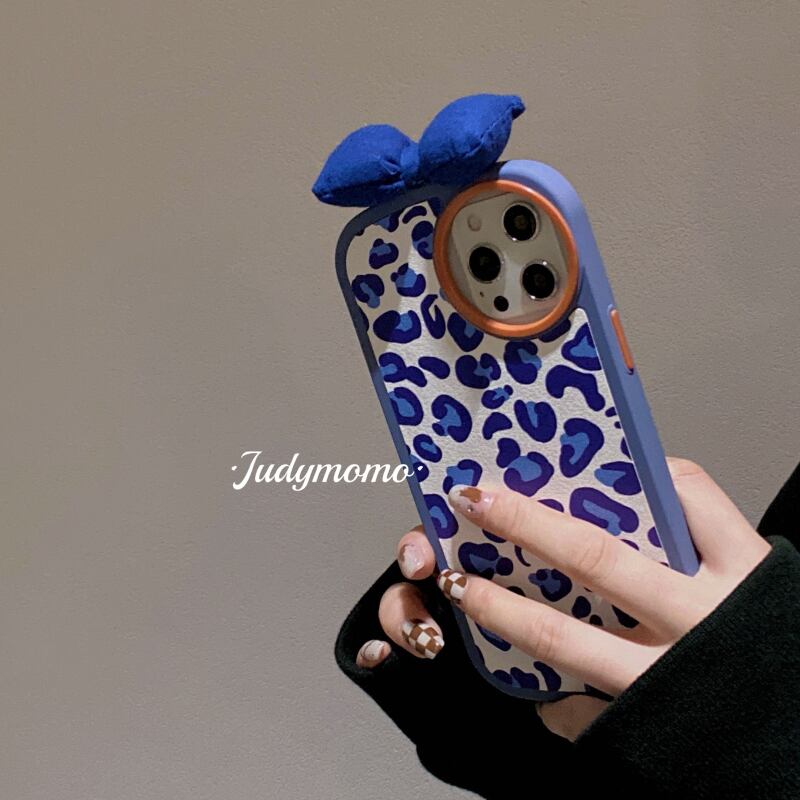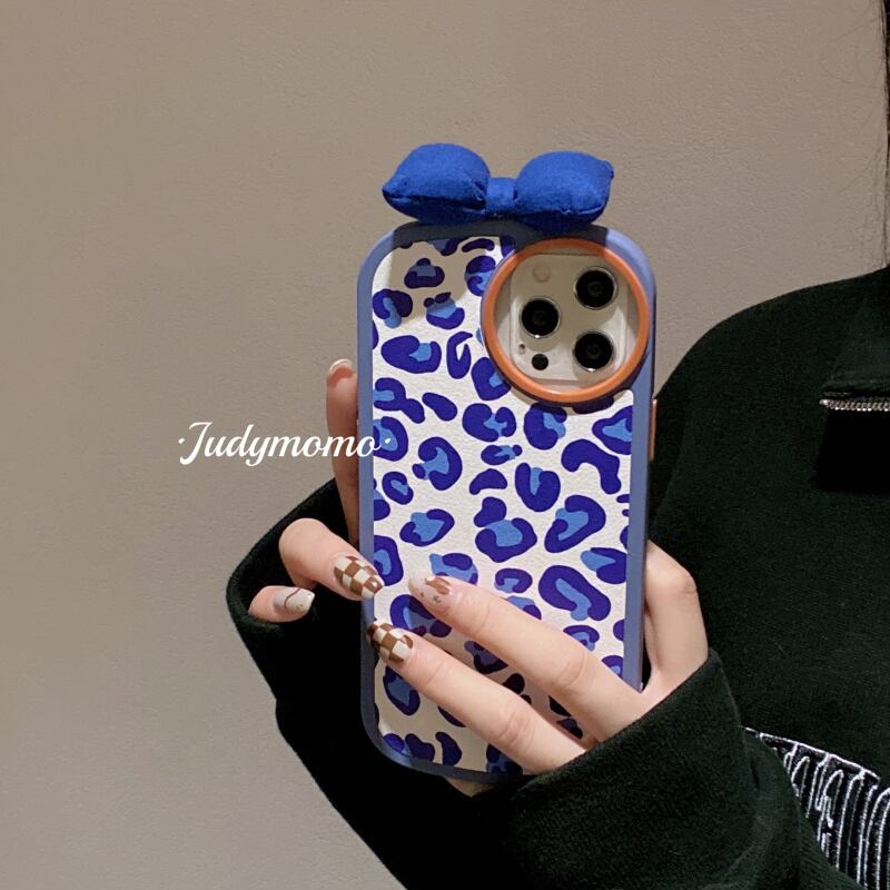 ins Klein blue leopard print iPhone13pro max apple 12 mobile phone shell 11 bow xr female 7p ブルー リボン NEW iphoneケース かわいい MOMO65481350066