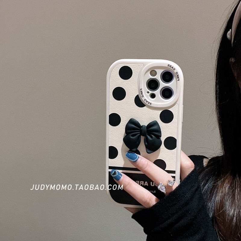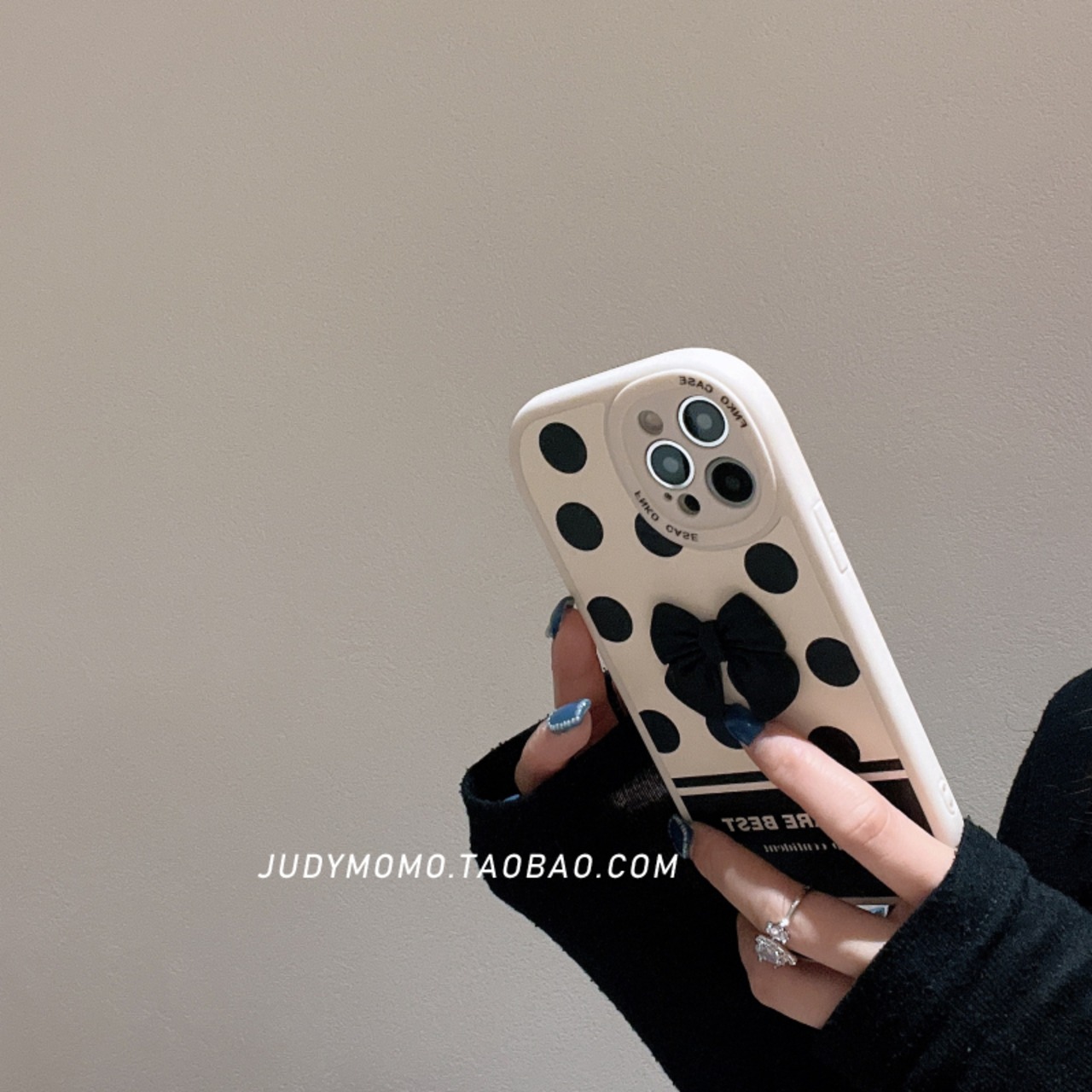 ダークウェーブポイントボウに適したiPhone13携帯電話シェル12promaxアップル11xr新しいxsソフト リボン かわいい MOMO69534314411