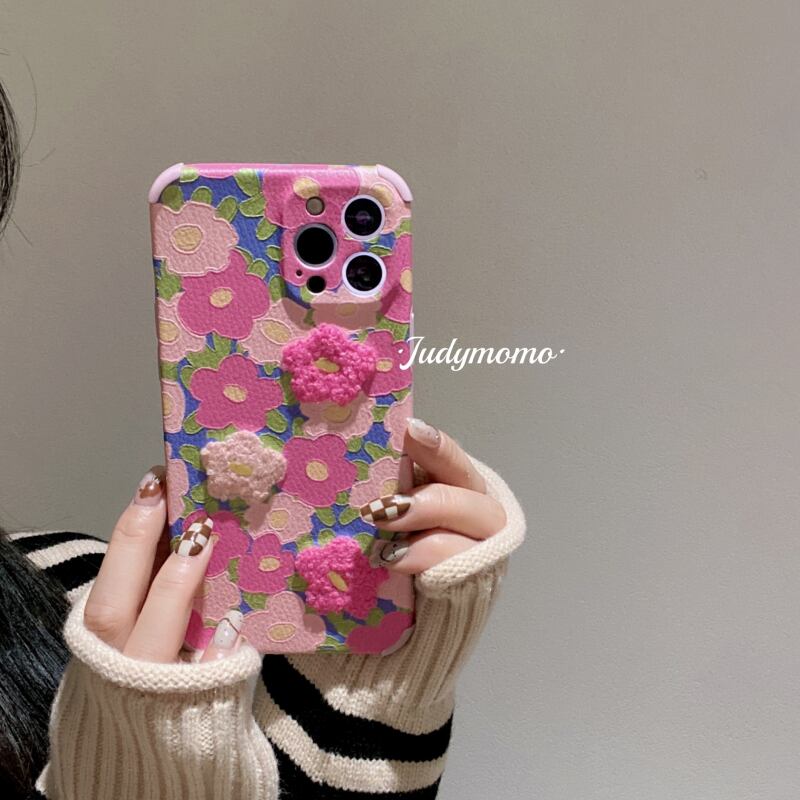 新鮮なピンクのぬいぐるみの花に適した13promaxアップル11オールインクルーシブiPhone12携帯電話シェルxr新しい フラワーデザイン iphoneケース かわいい MOMO8797749270
