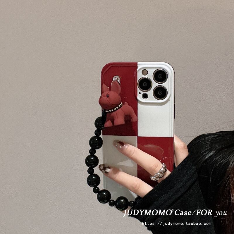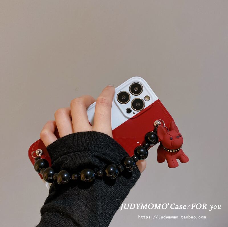 赤いブルドッグチェーンiPhone13promaxアップル12/11携帯電話シェルxr新しい8pメスxs レッド iphoneケース かわいい MOMO35761885043
