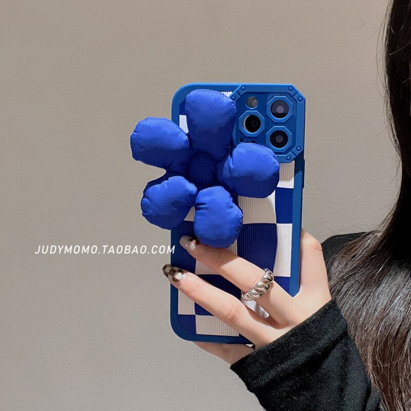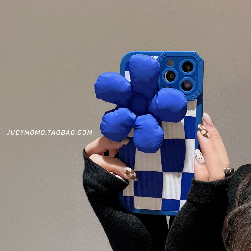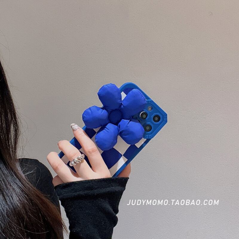チェッカーボードクラインブルーダウンフラワーに適した13アップル12promax新しいxr携帯電話シェルiphone11ソフト フラワーデザイン iphoneケース かわいい MOMO71606024414