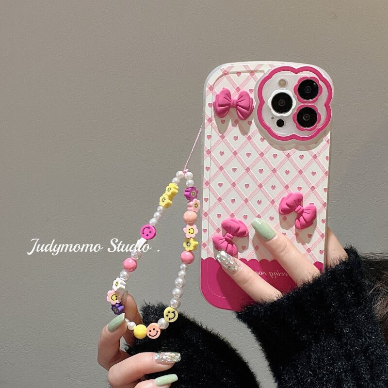 ins自家製ハンギングチェーンフラワーに適したiPhone13携帯電話シェル12アップル11proマックスピンクボウxr リボン フラワーデザイン NEW iphoneケース かわいい MOMO82233941596