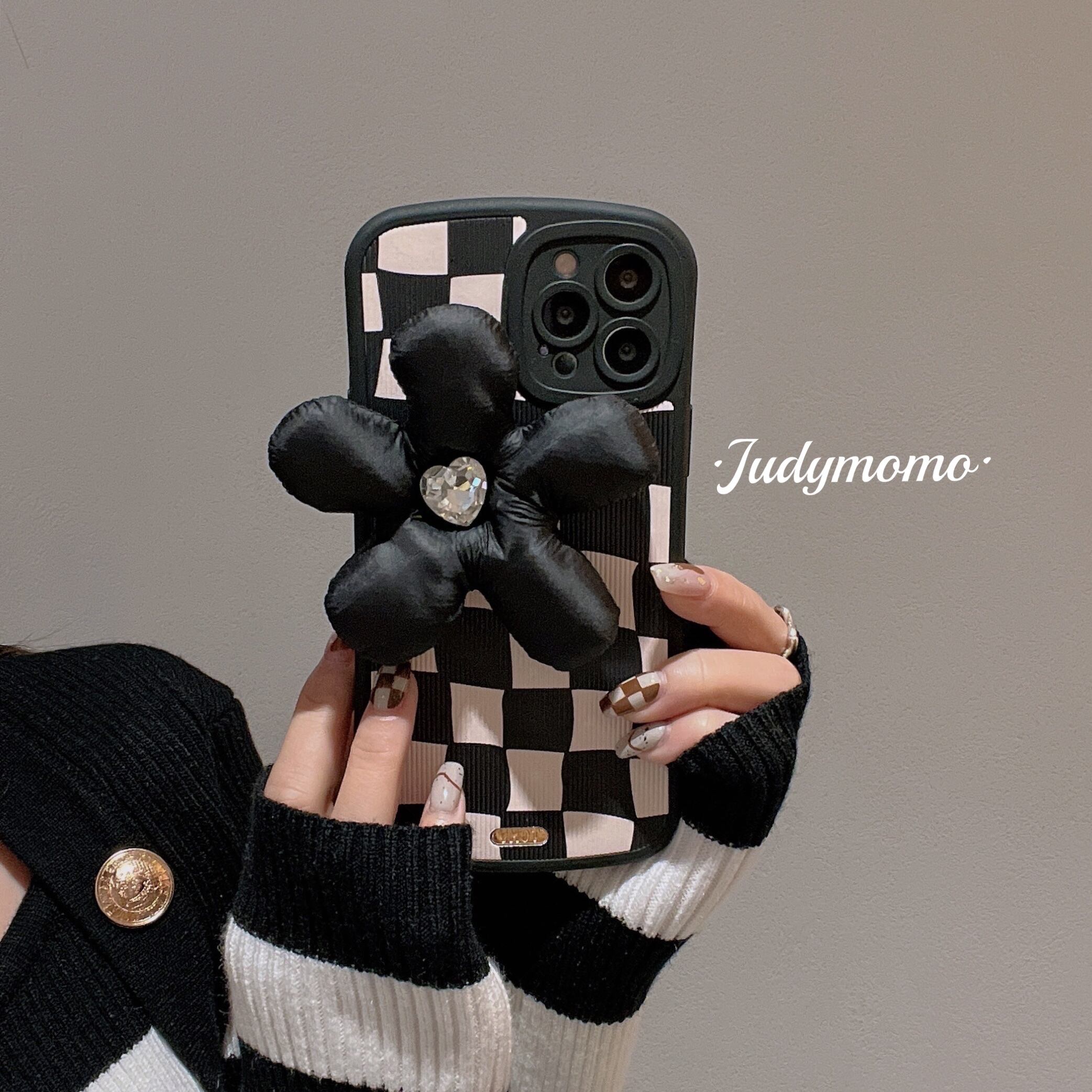 insプレミアムダウンフラワーブラックに適したiPhone13promaxアップル11携帯電話ケース12チェッカーボードxr/7 フラワーデザイン NEW iphoneケース かわいい MOMO17017083463