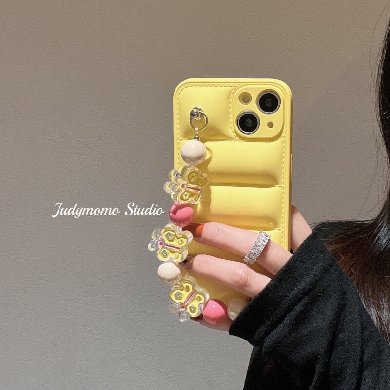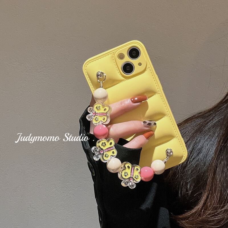 ins柔らかい黄色の蝶ビーズチェーンに適した13アップル12promax携帯電話シェルiPhone11シリコンxrメス NEW iphoneケース かわいい MOMO51082853764