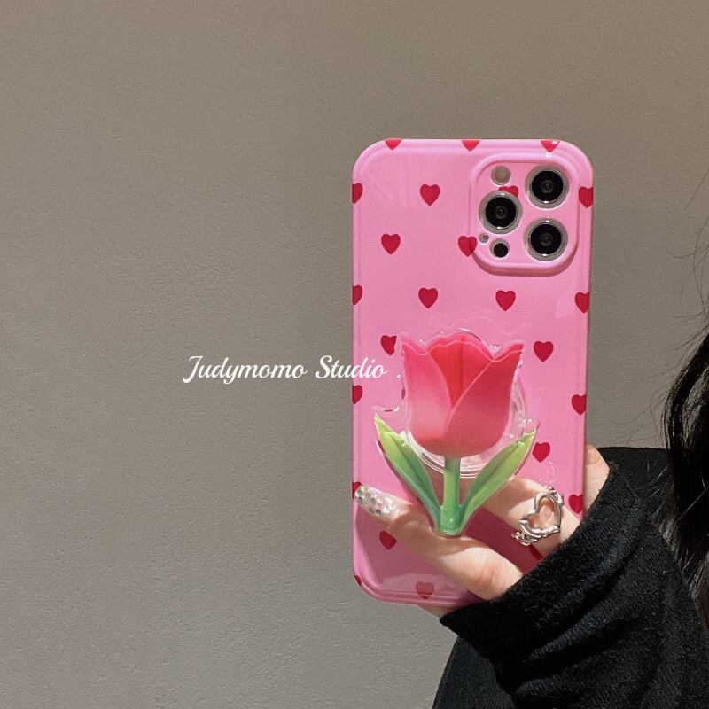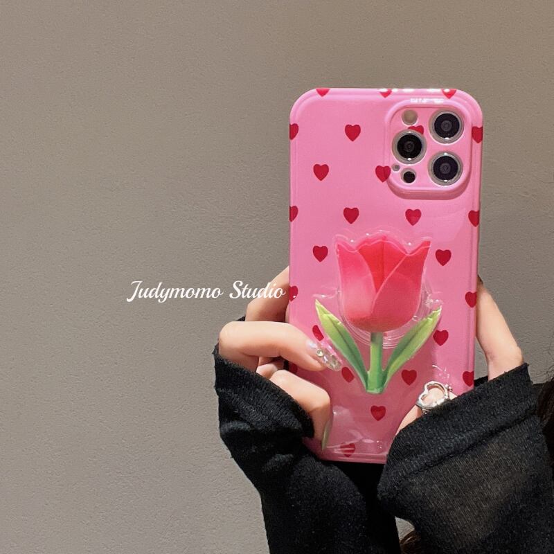 ピンクの愛のチューリップに適した13promaxアップル11携帯電話シェルiPhone12シリコンxrブラケットx かわいい MOMO3618696470