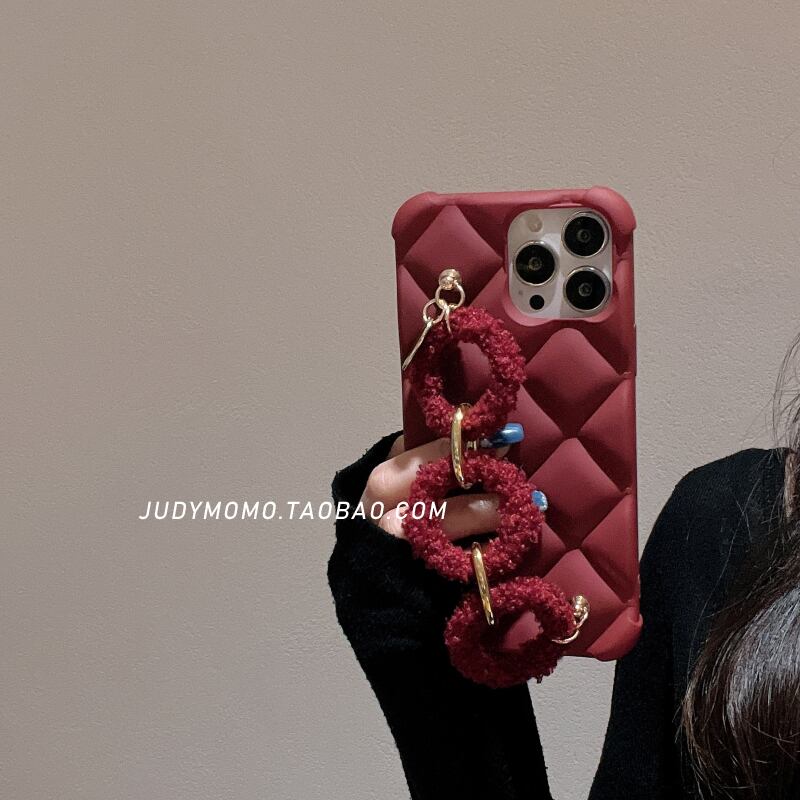 レトロな赤いぬいぐるみリングチェーンに適したiPhone13携帯電話シェル12promaxアップル11新しいxr女性xsソフト レッド 指輪 かわいい MOMO81434323208