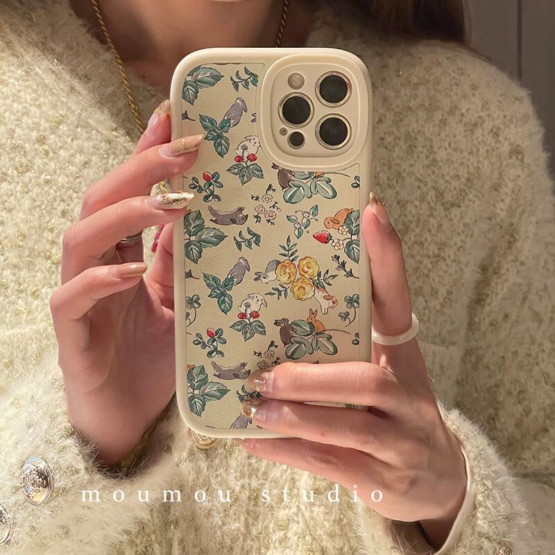 気質イン風花うさぎに適したアップル11iphone13携帯電話シェル12proマックスセット7/8pレザーパターン フラワーデザイン NEW かわいいA MOMO_A84818705743