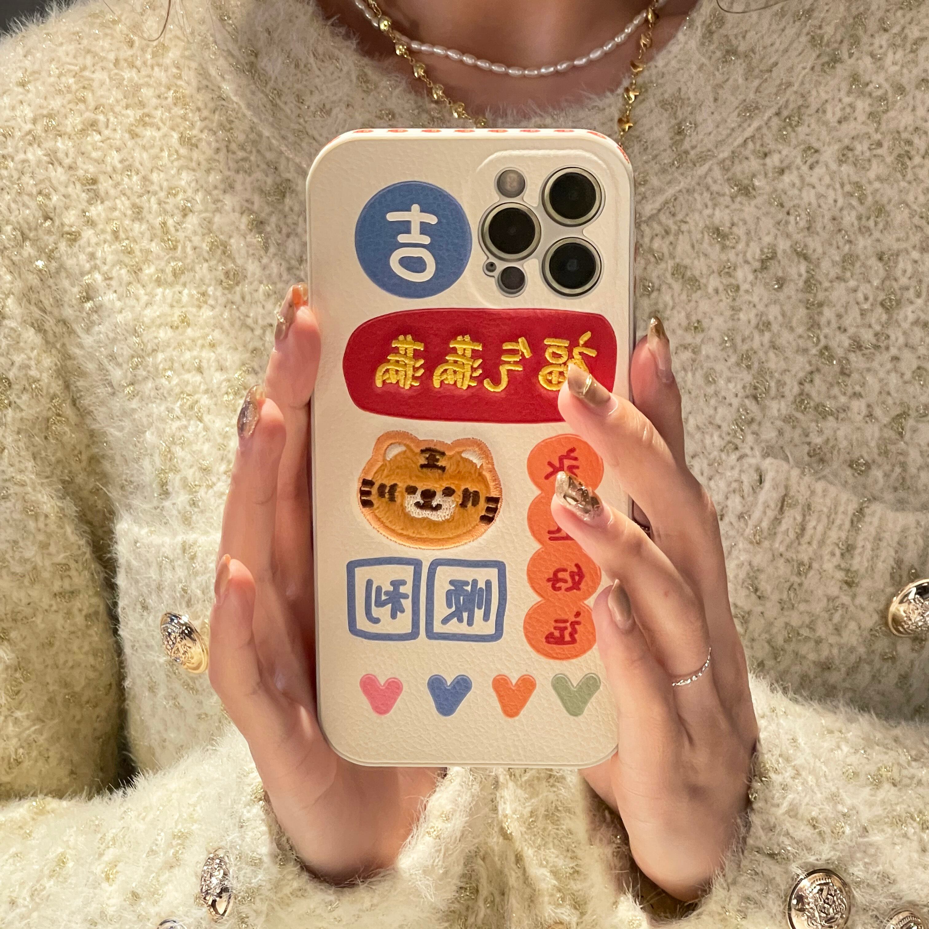 年の中国風刺繡テキストアップル11iphone13携帯電話シェル12promax革の質感シリコンスリーブ 刺繍 レザー かわいいA MOMO_A5327239995
