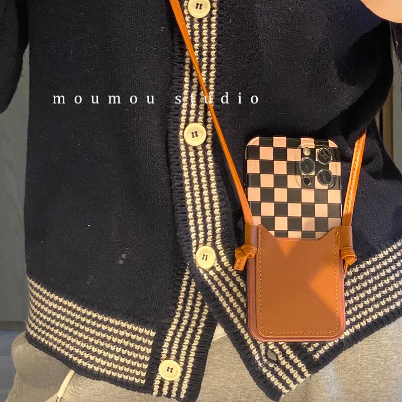 韓国秋冬のチェスグリッドメッセンジャーIPHONEケース12promaxセット13カップル オータム 秋物 ウィンター 冬物 かわいいA MOMO_A88826168013