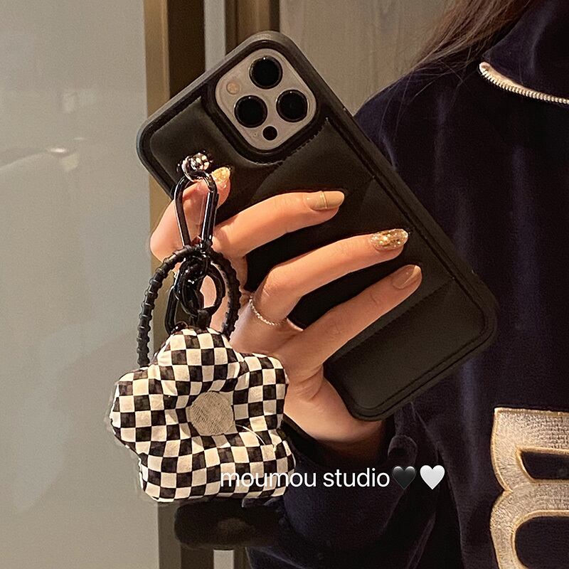 と韓国のダウンジャケット市松模様の花に適したアップル11iphone13携帯電話シェル12promaxシリコンスリーブ8p レッド フラワーデザイン かわいいA MOMO_A98674687530