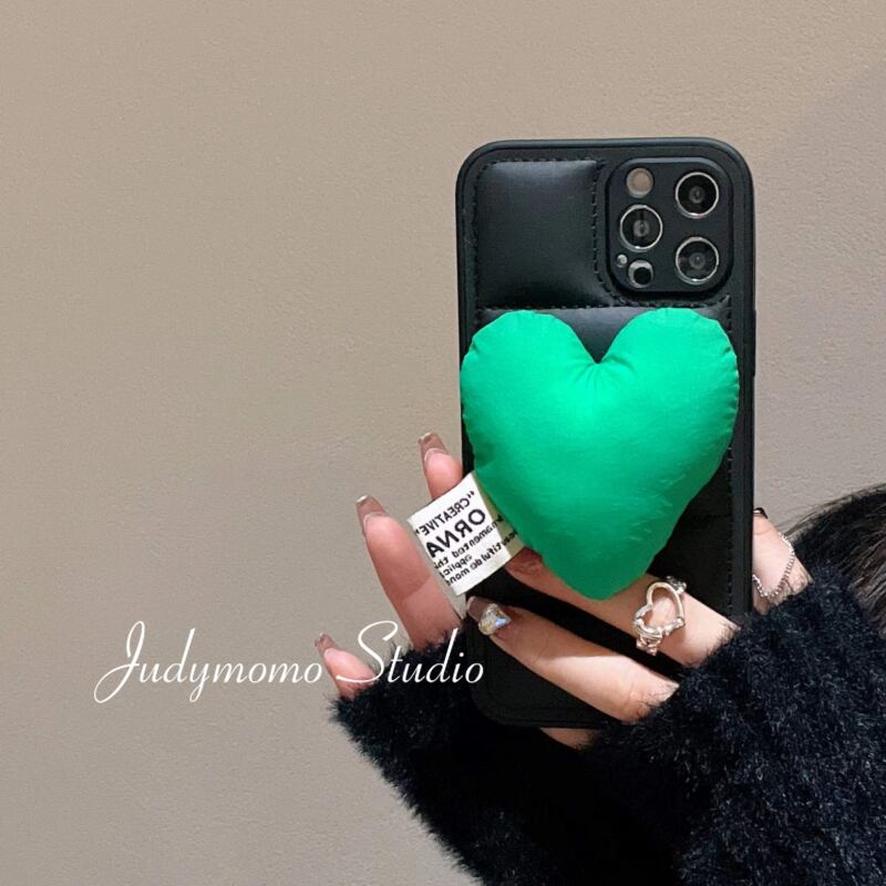 insグリーンラブダウンジャケットに適したiPhone13promax携帯電話シェル12アップルx新しい11女性xrオールインクルーシブ NEW かわいい MOMO96973393999