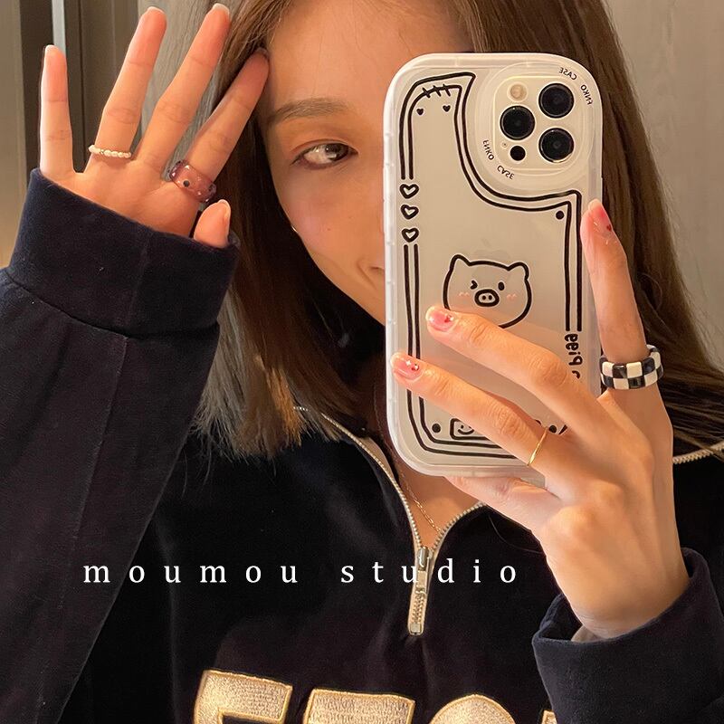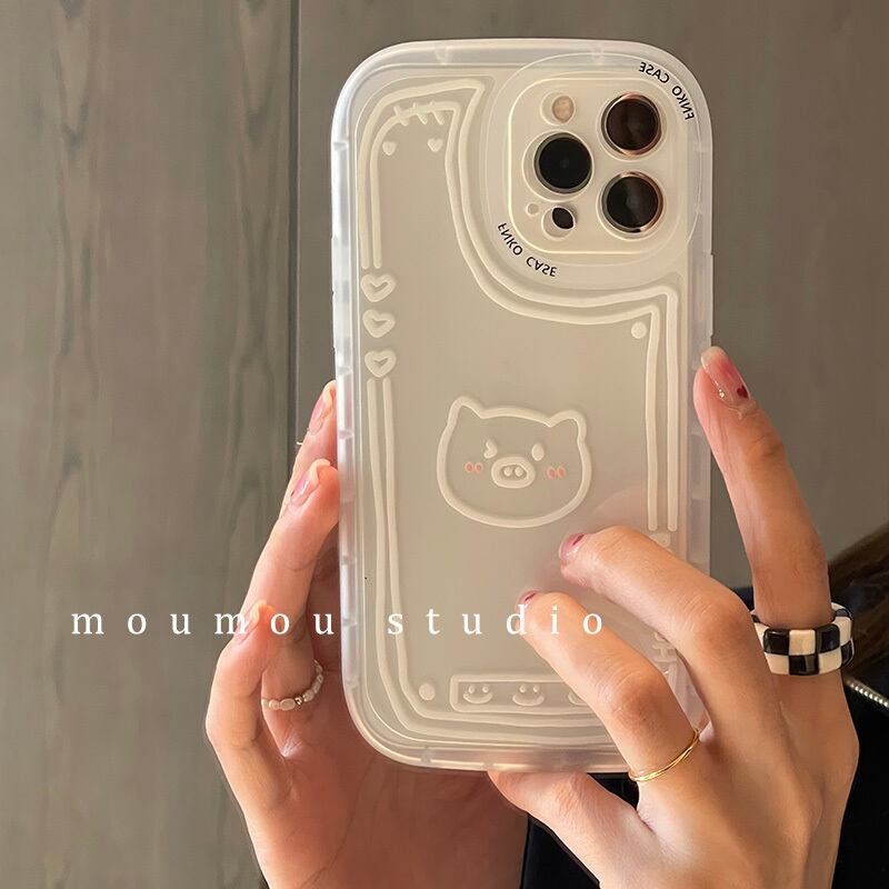 と韓国のシンプルなライン豚に適したアップル11iphone13携帯電話シェル12promaxシリコンスリーブ透明 かわいいA MOMO_A38870916374