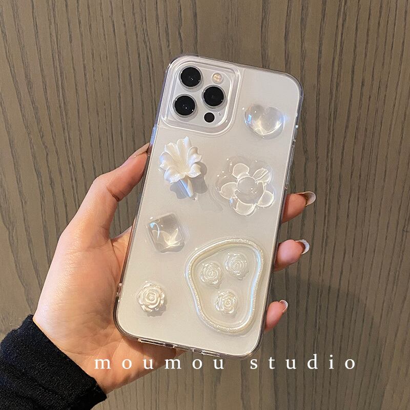 シンプルなパールフラワーに適したアップル11iphone13携帯電話シェル12promaxシリコンスリーブ8p 真珠 フラワーデザイン かわいいA MOMO_A11335278237