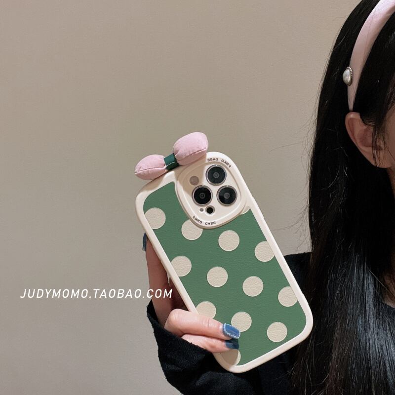緑の水玉模様の弓が適していますiPhone13promax携帯電話シェル12アップル11オールインクルーシブxrソフトxs リボン グリーン かわいい MOMO35263077205