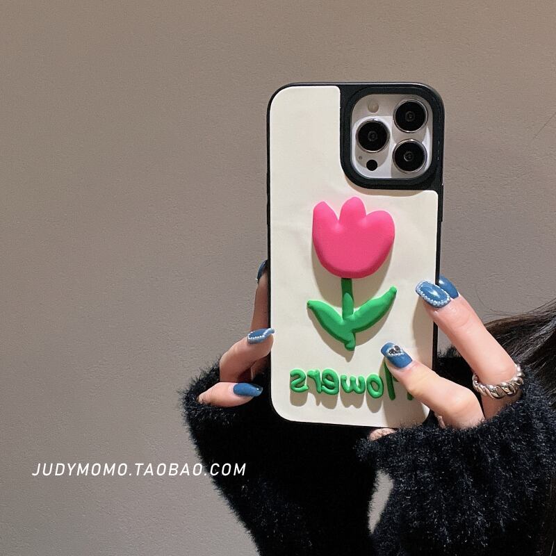 女の子の立体花に適した13promax携帯電話シェルシリコンxr/xs新しい8p フラワーデザイン かわいい MOMO82726362959