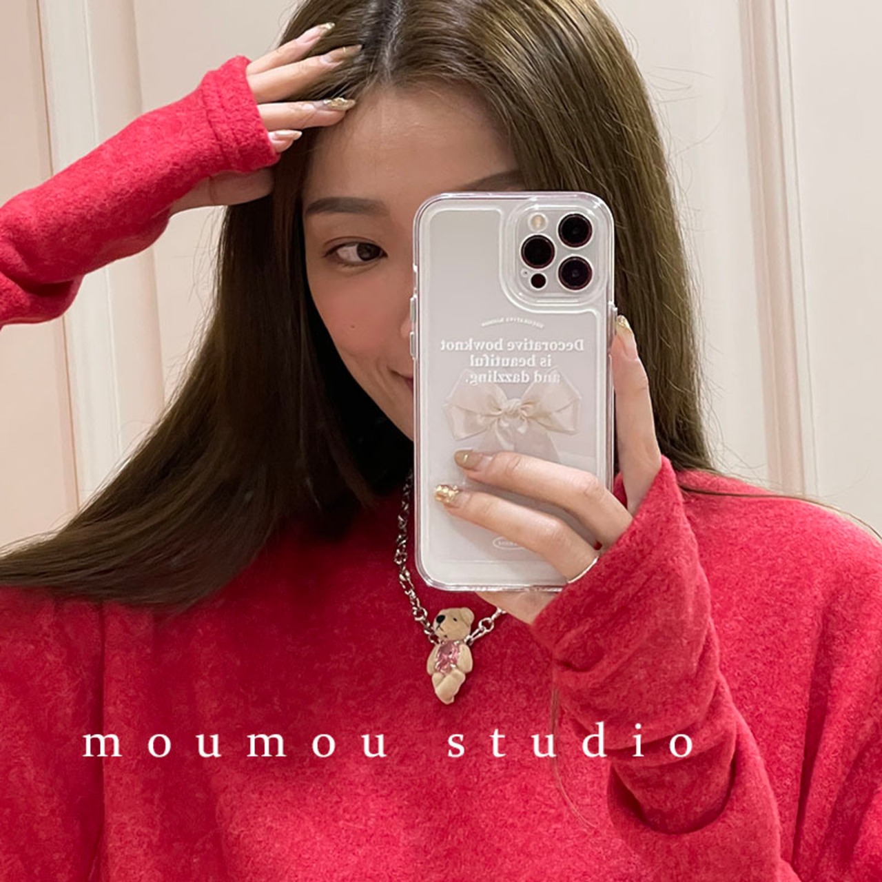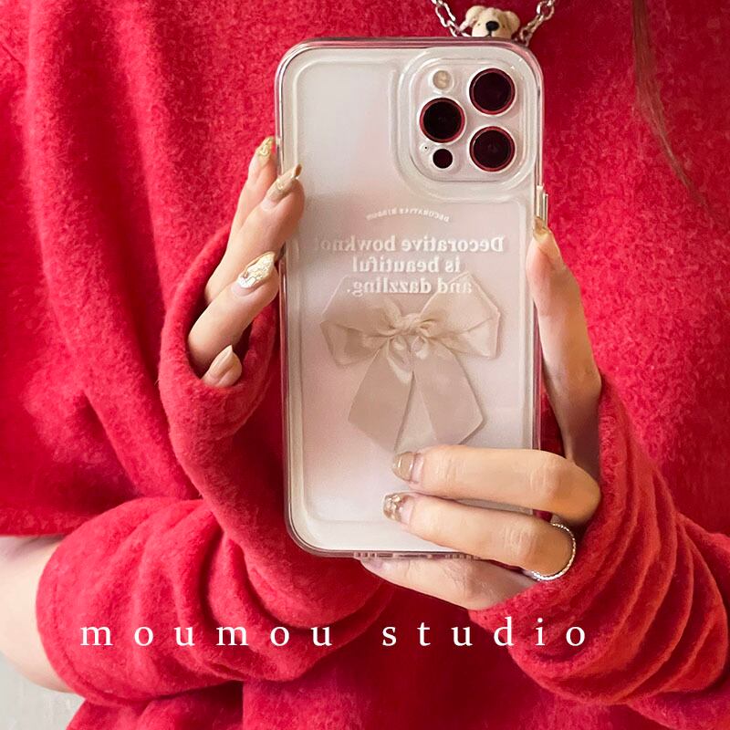 と韓国のシンプルな弓の透明な適切なアップル11iphone13携帯電話シェル12promax保護カバー リボン かわいいA MOMO_A36483979794