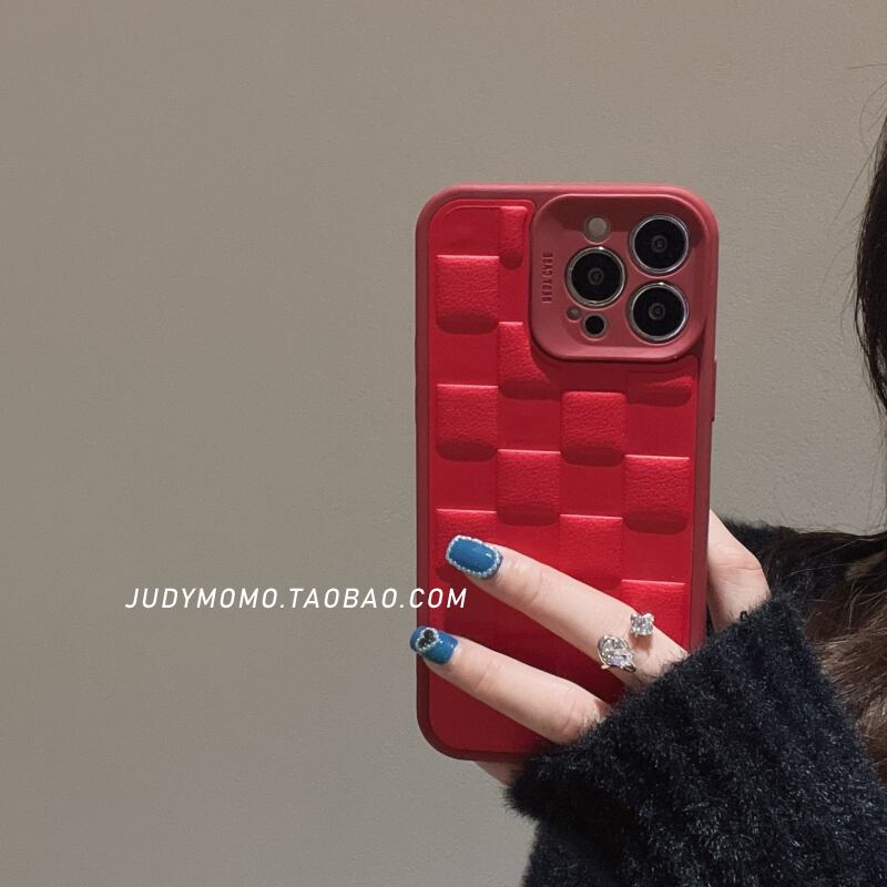 赤いチェッカーボードの3次元に適した携帯電話シェルiPhone11新しいxrメスxsシリコン レッド かわいい MOMO22114469456