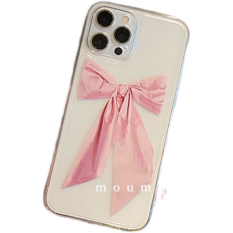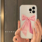 と韓国のファンに適した弓を持った携帯電話シェル12promaxシリコンスリーブ8p透明 リボン 韓国ファッション かわいいA MOMO_A77066623464