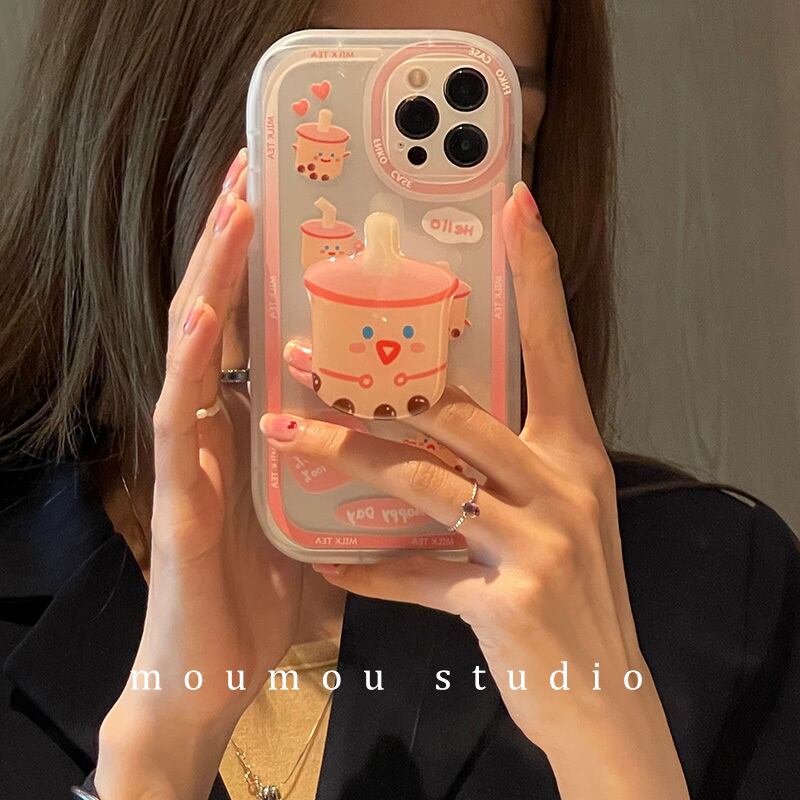 と韓国のミルクティートーストに適した携帯電話シェル12promaxシリコンスリーブスルーブラケット 韓国ファッション かわいいA MOMO_A48730198795