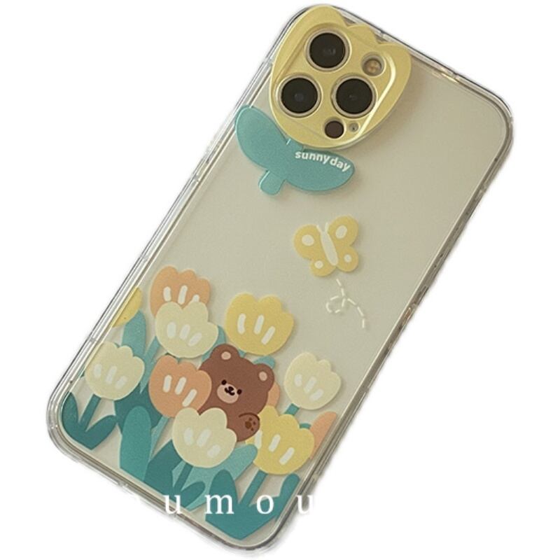 と韓国のチューリップかわいいクマに適したアップル11iphone13携帯電話シェル12proマックスシリコンスリーブスルー 大人ガーリー スウィート キュート カジュアル 韓国ファッション かわいいA MOMO_A57087619966