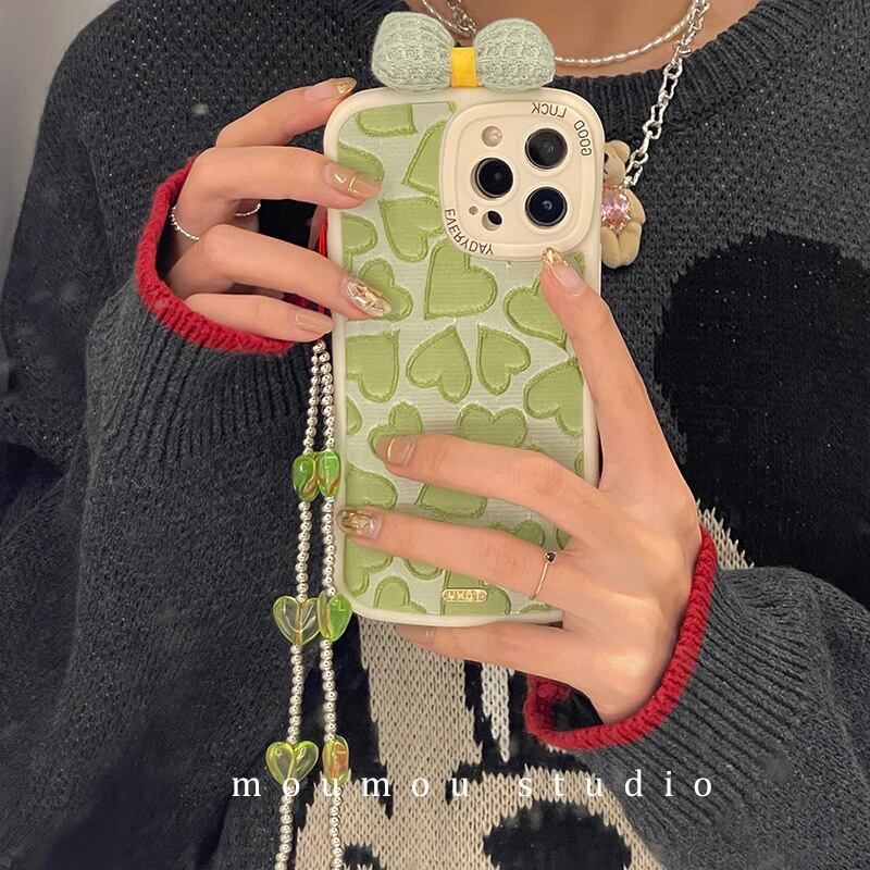 と韓国の緑は新鮮な適切なアップル11iphone13携帯電話シェル12promaxシリコンスリーブチェーンが大好きです グリーン かわいいA MOMO_A23609822879