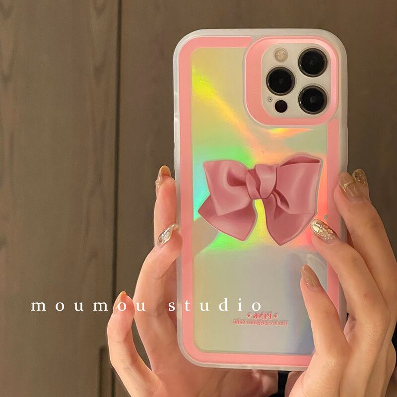 と韓国のシンプルなパーソナリティボウに適した携帯電話シェル12promaxレーザーシリコン8 リボン かわいいA MOMO_A34796964629