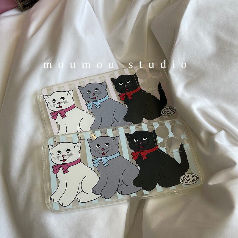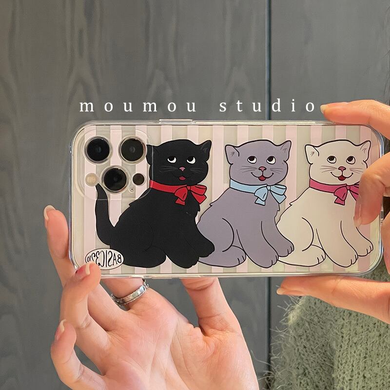 と韓国のかわいい3匹の猫に適した携帯電話シェル12promaxシリコンスリーブ透明 大人ガーリー スウィート キュート カジュアル かわいいA MOMO_A98078003919
