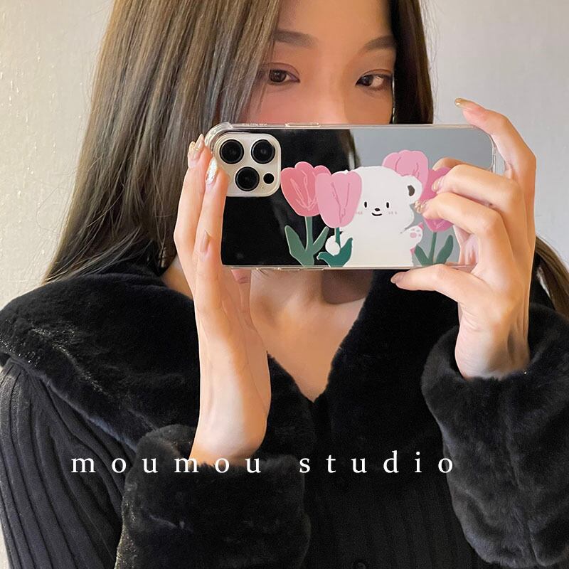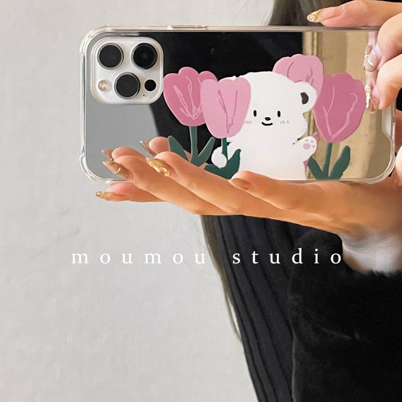 と韓国ミラーフラワーホワイトベアに適したアップル11iphone13携帯電話シェル12promaxシリコンスリーブ8p フラワーデザイン かわいいA MOMO_A22358427270