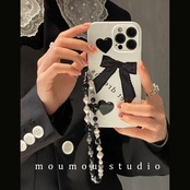 と韓国のブラックボウチェーンに適した携帯電話シェル12promaxシリコンスリーブメス リボン かわいいA MOMO_A89436319661