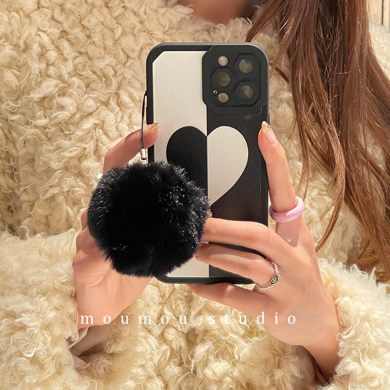色:マルチグリッドスモールハート+ブラックヘアボール,黒と白の愛+黒の毛玉