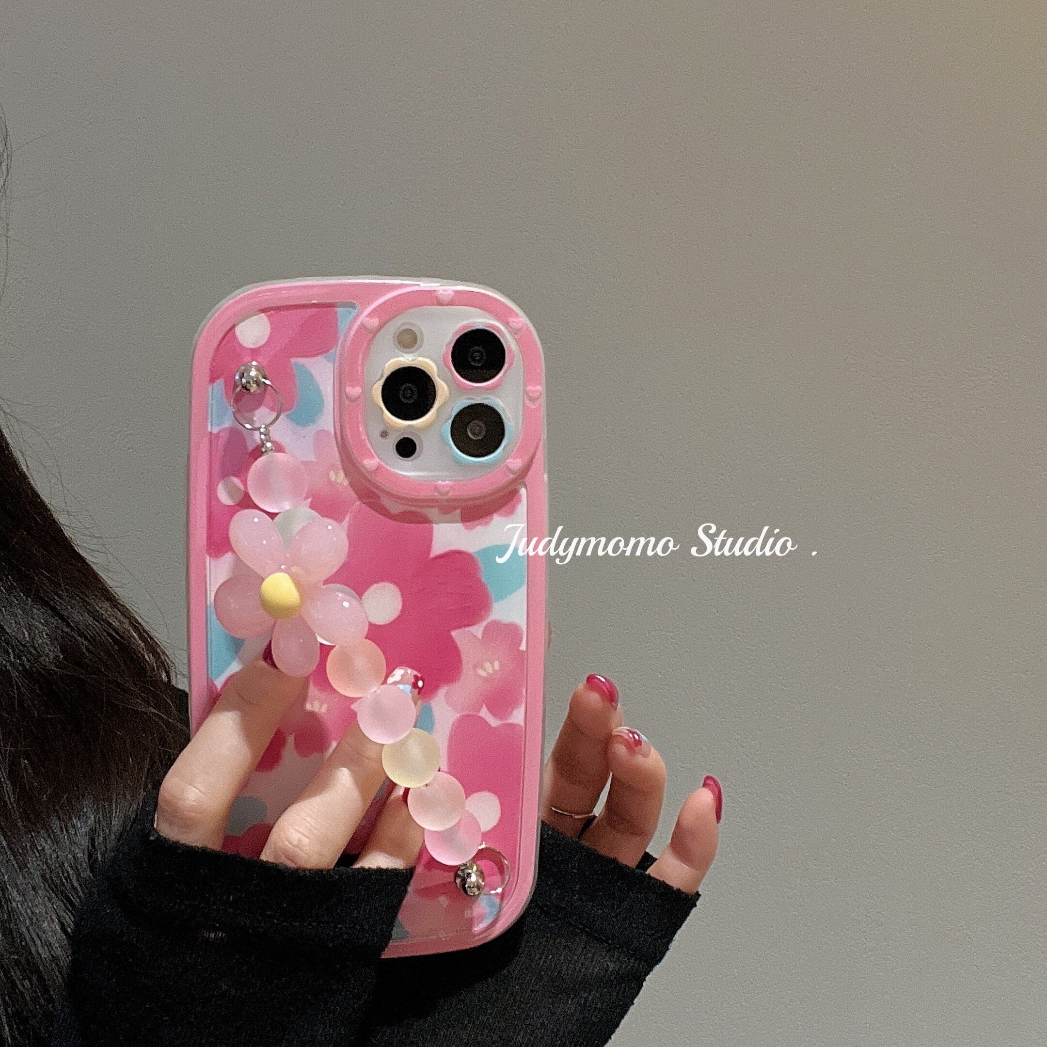 韓国のパウダーフラワーチェーンiPhone13携帯電話シェルシリコンx新しい フラワーデザイン 韓国ファッション NEW iphoneケース かわいい MOMO19072068212
