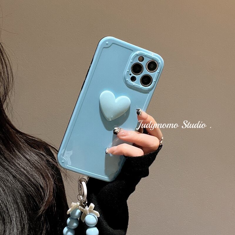 ガールハートベイビーブルービーズチェーンに適したiPhone13promax携帯電話シェル12Apple11 new xr soft iphoneケース かわいい MOMO18566164449